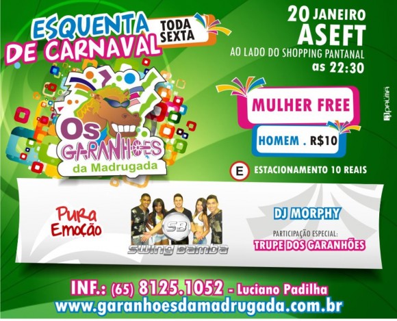 Coletiva de Imprensa nesta sexta, 13 de janeiro, marca o lançamento oficial do Carnaval 2012 do Bloco “GARANHÕES DA MADRUGADA”....