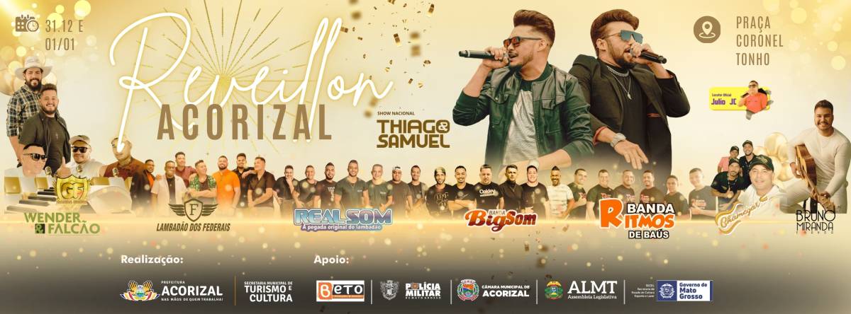 A cidade de Acorizal (MT) se prepara para um evento duplo no final do ano: a celebração do Réveillon e a posse do prefeito, vice-prefeito e vereadores eleitos para o mandato 2025/2028. A Prefeitura organizou uma programação especial, que inclui shows musicais, missa e solenidade oficial de posse.