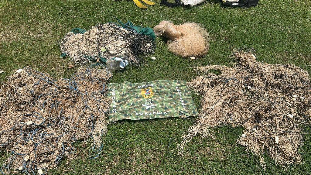 Entre os materiais utilizados na pesca ilegal, foram apreendidas seis redes de pesca com um total de mais de 300 metros, incluindo uma rede que se estendia por mais de 100 metros de margem a margem do rio, duas tarrafas e 41 anzóis de galho retirados do leito do rio.