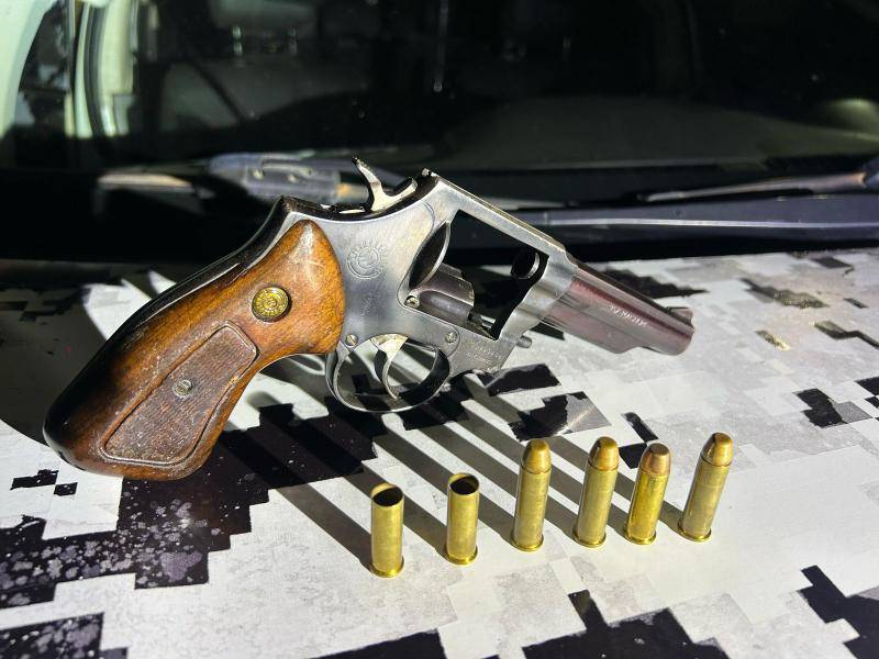 No local, duas barras de maconha foram encontradas dentro de uma bolsa guardada no quarto. Além disso, apreendeu um revólver calibre 357 com duas munições deflagradas e 4 intactas.