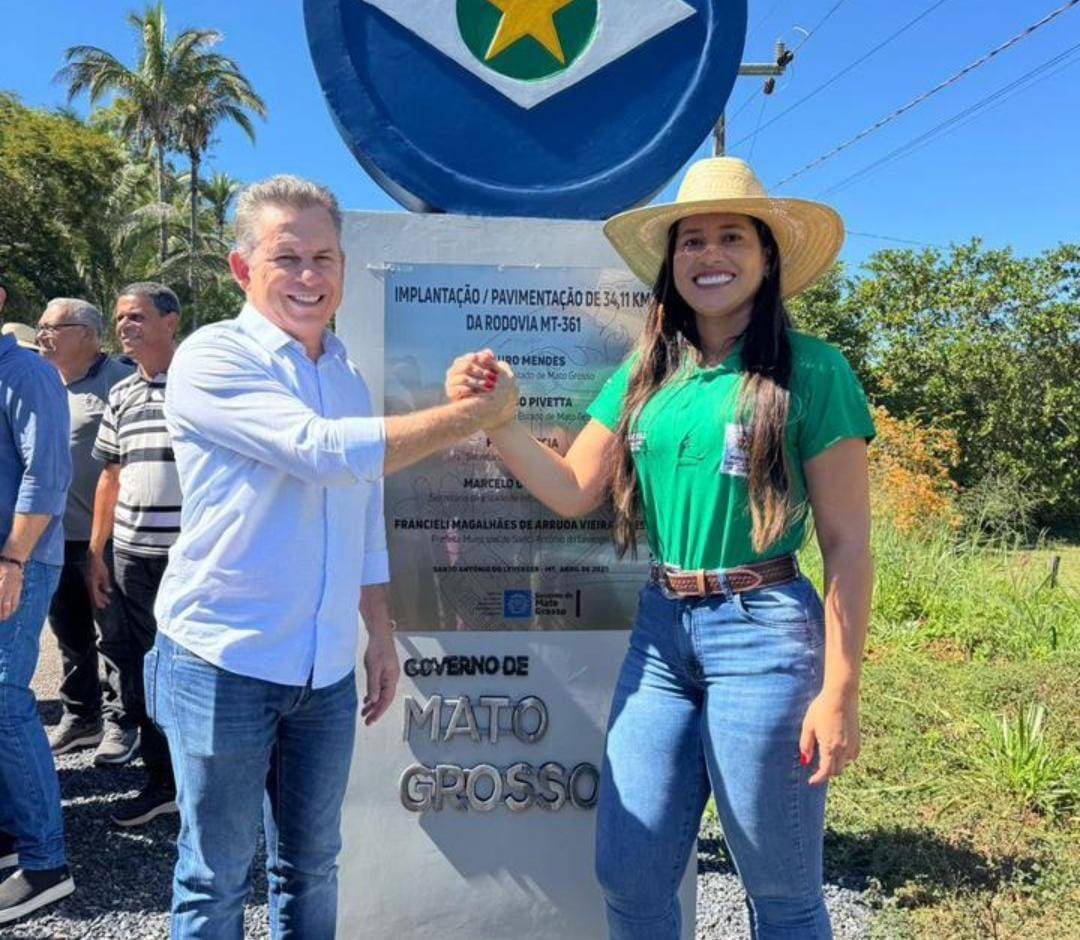 A inauguração do asfalto novo nas rodovias MT-361 e MT-468 na região da Agrovila das Palmeiras, em Santo Antônio de Leverger, neste sábado (31/05), pelo governador Mauro Mendes e a prefeita Francieli Magalhães, permite acesso da comunidade à BR-163, à sede do município e a Barão de Melgaço.
