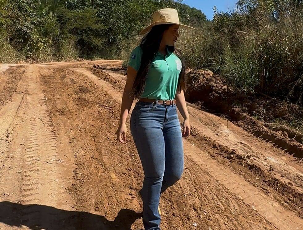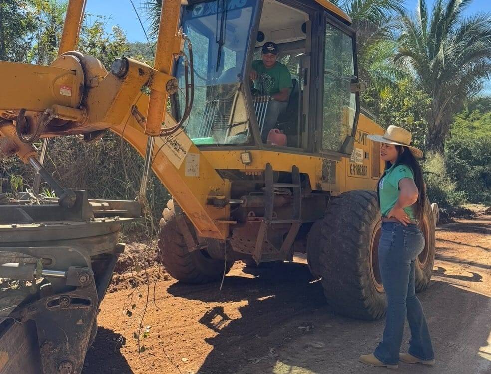 "Acompanhamos de perto o patrolamento da estrada de Sangradouro. E, é claro, que a prefeita não resistiu e subiu na patrola para sentir de perto o trabalho", contou a prefeita.
