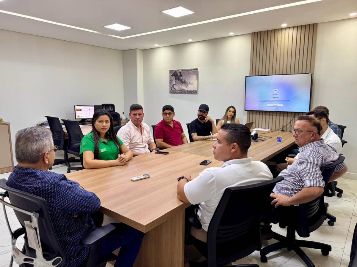 A prefeita Francieli Magalhães e o presidente da Câmara Municipal de Santo Antônio de Leverger, Rafael Lima, reuniram-se nesta quinta-feira (17/07) com o presidente do Intermat, Francisco Serafim de Barros, para tratar sobre os limites do município e o Morro de Santo Antônio.