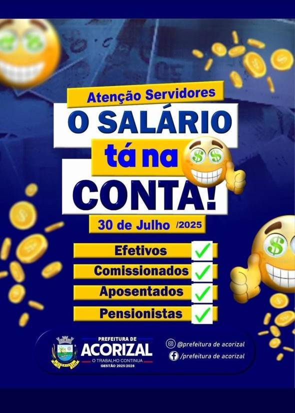 O prefeito de Acorizal Diego Taques realizou o pagamento do salário de todos os servidores do município nesta quinta-feira (30/07). Tanto efetivos, comissionados, aposentados e pensionistas.