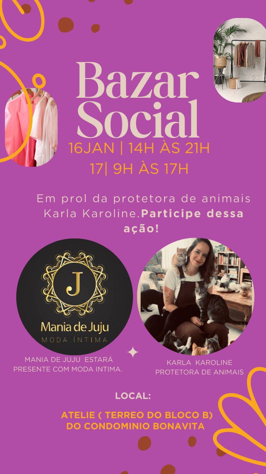 Um bazar solidário será realizado entre os dias 16 e 17 de janeiro em Cuiabá, com foco em quem aprecia brechós e também se sensibiliza com a causa animal. A iniciativa busca arrecadar recursos para a compra de ração destinada a animais resgatados das ruas e que são cuidados pela protetora e servidora pública Karla Karoline, que atua de forma voluntária com o projeto ‘Amor aos Animais de Rua‘.