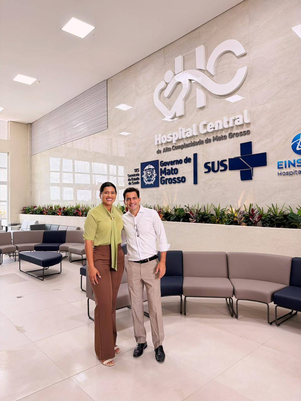 A visita ocorreu como parte das atividades institucionais da gestora municipal e contou com a participação do vice-governador Otaviano Pivetta, do chefe da Casa Civil, Fábio Garcia, além de prefeitos e prefeitas de diversos municípios mato-grossenses, que integraram a comitiva durante o percurso pelas dependências do hospital.
