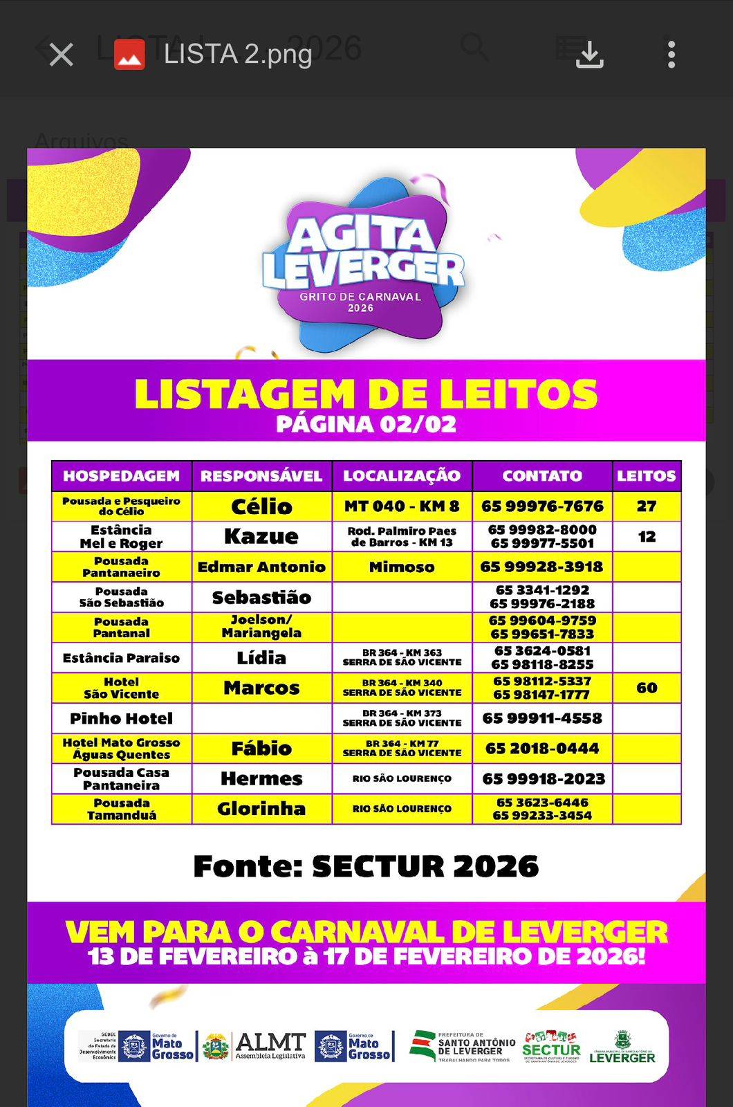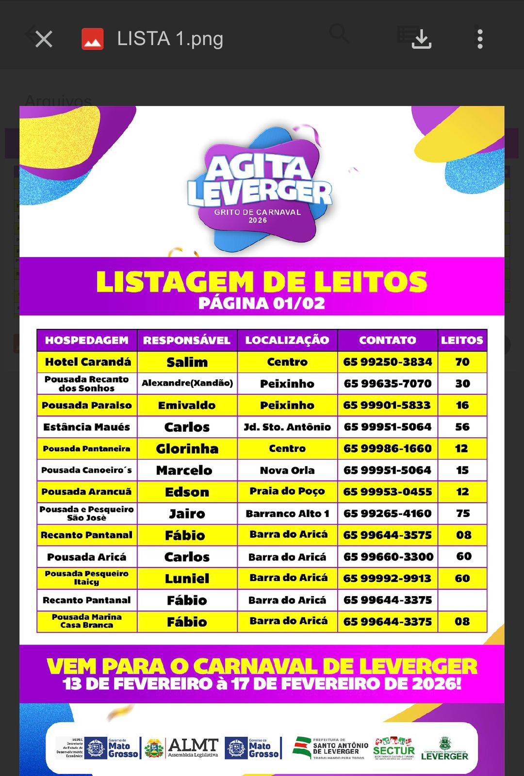 Herielso Dodô explicou que os novos locais de hospedagem foram cadastrados e divulgados nas redes sociais oficiais, com validação da Secretaria de Turismo. De acordo com ele, a expectativa é de que todas as opções disponíveis sejam utilizadas durante os dias de Carnaval, em razão do fluxo previsto de visitantes no município.