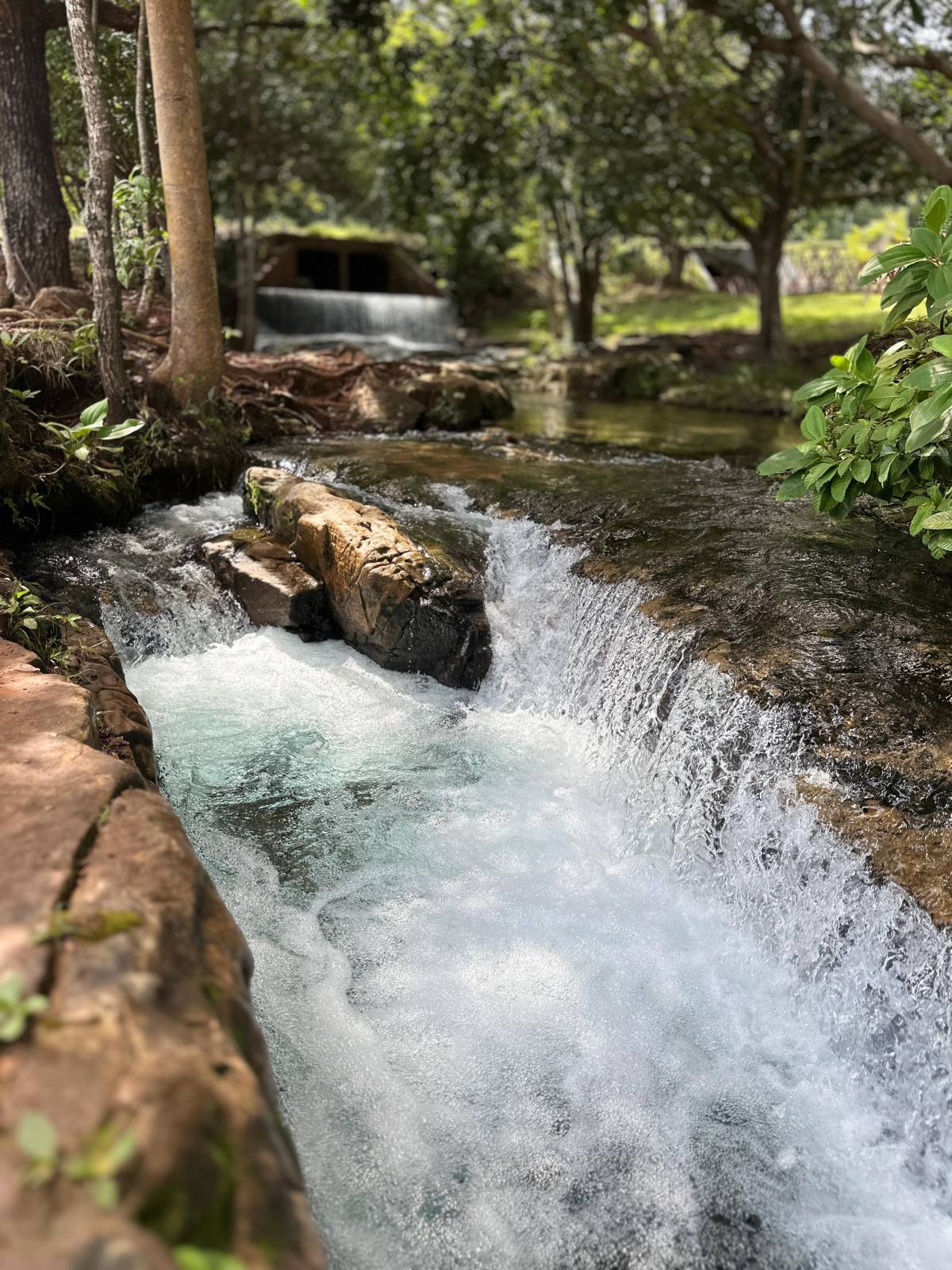 A área destinada ao banho conta com três pontos, incluindo a cachoeira e duas áreas no riacho, localizadas acima da queda d’água.