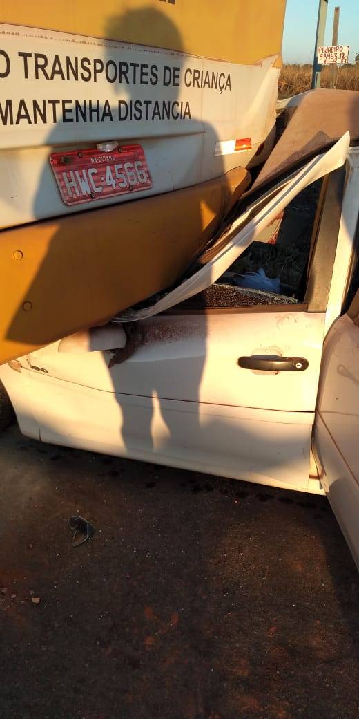 O acidente ocorreu no início da noite desta quinta-feira (4), na rodovia Palmiro Paes de Barros, na entrada do Bairro Nova Esperança, em Cuiabá. Um gol bateu na traseira de um ônibus que transportava crianças.
