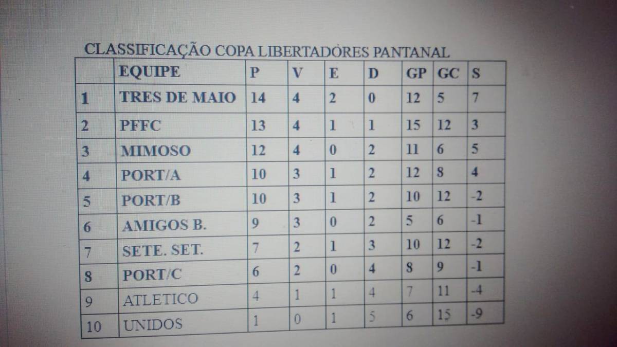 Líder isolado desde as primeiras rodadas da Copa Libertadores do Pantanal, a equipe de Três de Maio da comunidade de Fazenda/Mimoso deve obter sua classificação para a segunda etapa da competição com vantagens sobre seus adversários.