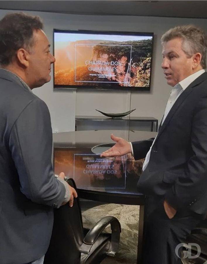 O governador Mauro Mendes (DEM) passou parte da manhã de segunda-feira (15) vendendo o potencial turístico de Mato Grosso para o secretário Nacional do Desenvolvimento do Turismo, Aluizer Malab Barbosa.