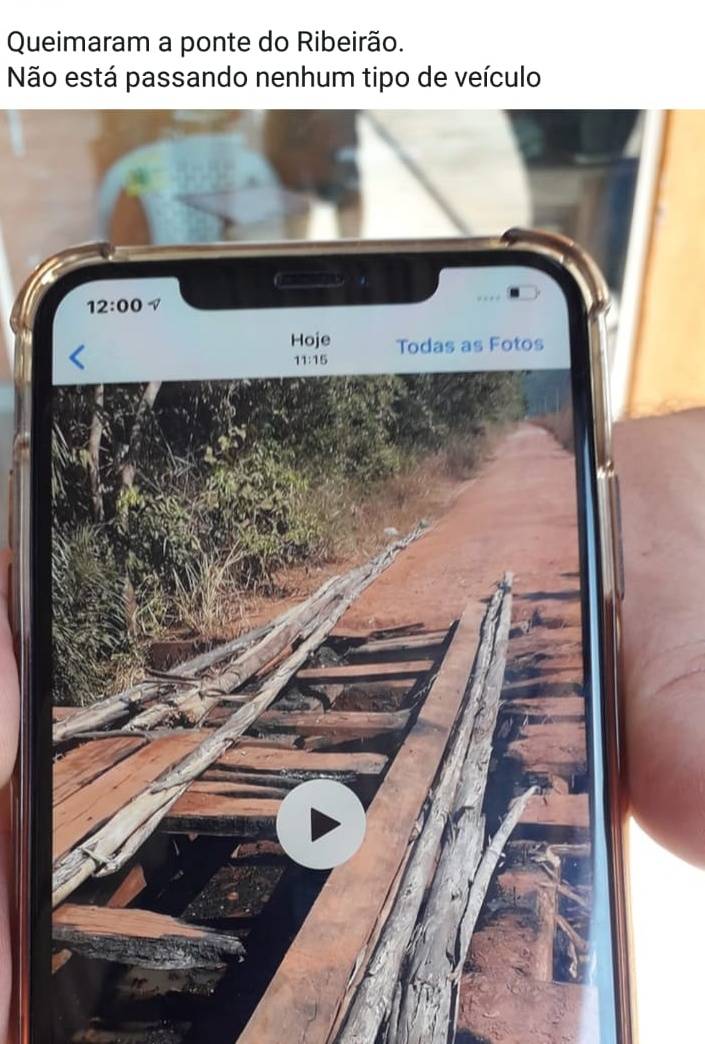 Imagens enviadas a redação do Notícias da Baixada, via Whatsapp, mostram uma ponte de madeira sendo incendiada no município de Santo Antônio de Leverger.
