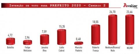 Essa é a primeira pesquisa da Avaliar Pesquisa e Comunicação Estratégica, com vistas ao pleito do ano que vem. O Instituto ouviu 1.251 pessoas aptas a votar nas eleições do ano que vem, entre os dias 5 a 10 de julho.