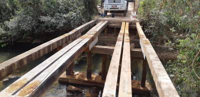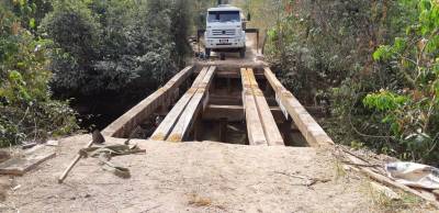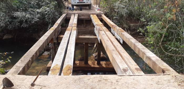 Homens com maquinários de uma empresa contratada pela prefeitura de Santo Antônio de Leverger-MT, finalizaram nesta segunda-feira (22), a reforma de uma ponte de madeira que liga os moradores da comunidade de Córrego do Ouro e Mata Mata a BR-364, região da Serra de São Vicente.
