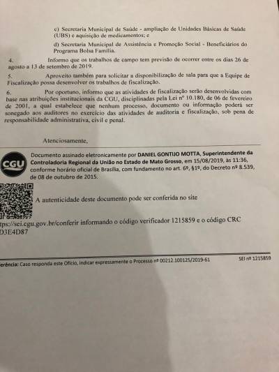 3 – Relatório preliminar, que será encaminhado para a Prefeitura, que terá um prazo de dez dias para responder. Os secretários do município, como seus colaboradores informaram estão trabalhando para atender da melhor forma possível no desenvolvimento dos trabalhos da equipe da CGU.