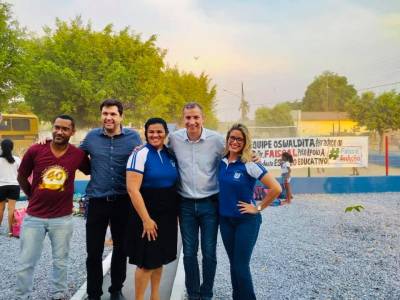 A praça entregue pelo deputado nesta sexta-feira vai servir de um novo espaço para as atividades recreativas de mais de 500 alunos do Ensino Fundamental da Escola Estadual Professora Osvaldita do Couto.