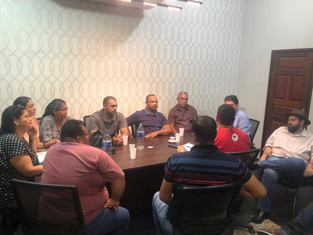 O prefeito de Santo Antônio de Leverger, Valdirzinho (PSD), reuniu nas primeiras horas da tarde desta sexta-feira (04), com a direção do Sintep/Leverger e os vereadores da sua base de apoio na Câmara Municipal.