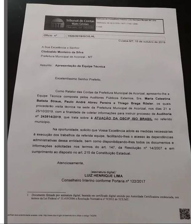 “Intervenção da justiça na Prefeitura de Acorizal vai durar três dias”. Clodoaldo Monteiro já foi afastado do cargo de prefeito, quando passou 15 dias fora da prefeitura, e foi reconduzido pela justiça.