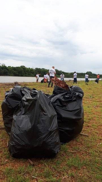 A ação que começou por volta das 8:00hs, teve apoio de tratores, caminhões e barcos. Os voluntários foram divididos em equipes, que percorreram as margens do Rio, juntando todo tipo de lixo, que viraram uma montanha poucas horas de trabalho.