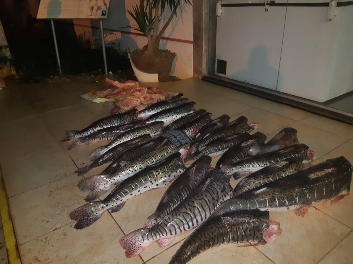 O pescado foi encontrado na parte traseira do veículo. Os peixes, das espécies pintado, cachara, jau e filé, estavam embalados em sacos.
