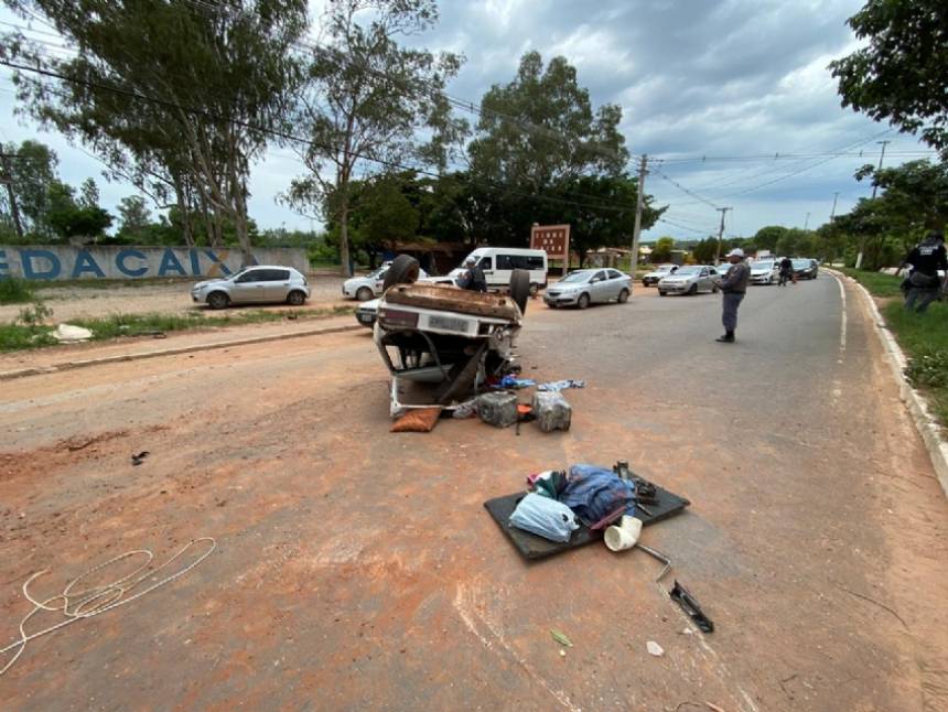 Três pessoas ficaram feridas, sendo uma em estado grave, após um Volkswagen Gol capotar na Rodovia Palmiro Paes e Barros (MT-040) no fim da manhã desta segunda-feira (16), no bairro Jardim Nossa Senhora Aparecida, em Cuiabá. Os nomes das vítimas não foram divulgados até a publicação desta reportagem.