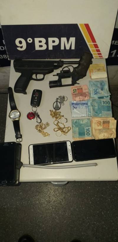 Com eles, foram apreendidos um Fiat Toro, um revólver calibre 38 e uma pistola de pressão modificada.