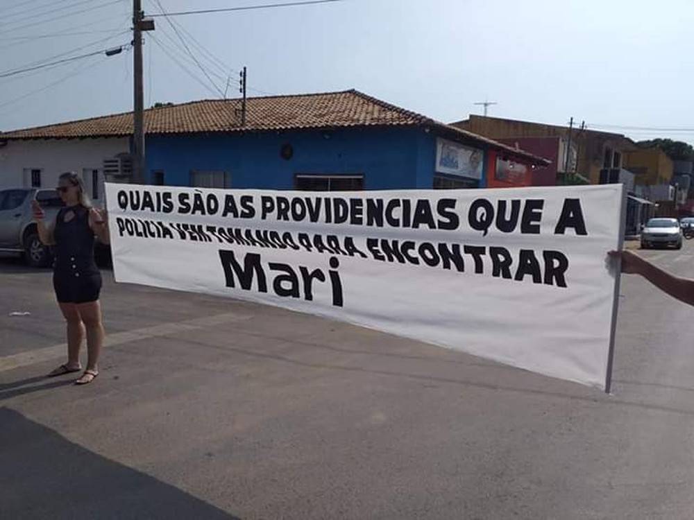 ´Quais são as providências que a polícia vem tomando para encontrar Mari?´, diz a frase em uma das faixas.