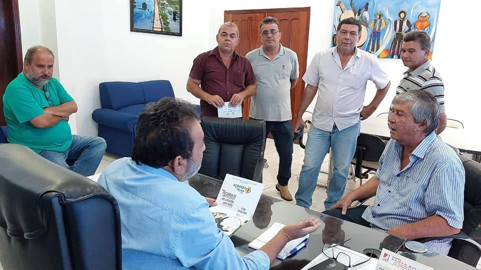 Na manhã desta segunda-feira (02/03), o presidente em exercício do Sindicato Rural de Poconé, Arlindo Márcio (Tico de Arlindo) e o associado, Donizete do Prado (Pradinho), estiveram na sede da Prefeitura reunidos com o prefeito Tatá Amaral (DEM), em seu gabinete, com a finalidade de oficializar o convite para que o gestor público municipal