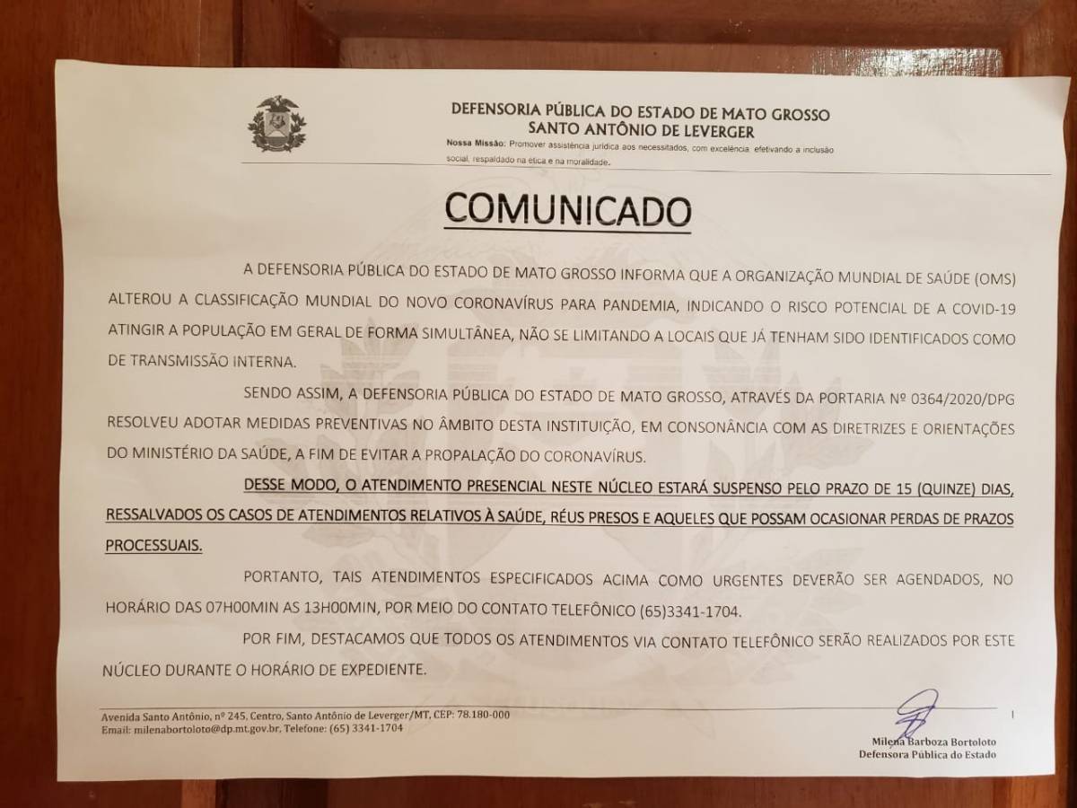 A Defensoria Pública do Estado suspendeu o atendimento presencial em todas as suas unidades pelo prazo de 15 dias, à exceção dos casos urgentes.
