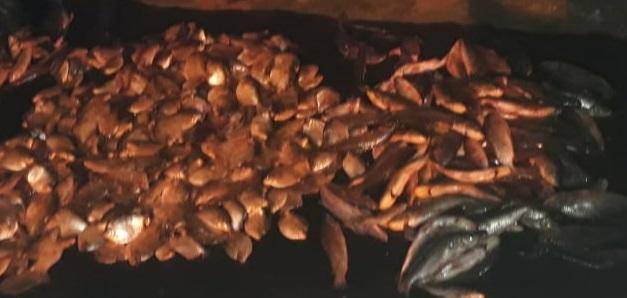 Em Poconé (a 104 km de Cuiabá), os policiais estavam na localidade de Porto Cercado realizando abordagens quando, na vistoria do veículo VW Voyage branco, com um casal, encontraram 237 quilos de pescado de várias espécies. Questionado, o motorista que é pescador profissional não apresentou a documentação de transporte e também não soube explicar o motivo de estar com uma carga acima da quantidade permitida e com pescado abaixo do tamanho mínima estipulado.