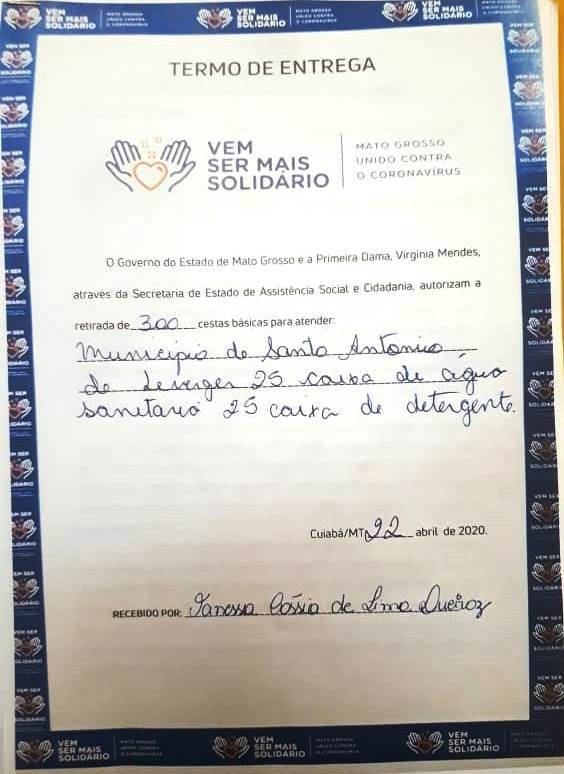 Causa estranheza é que se houve recebimento das cestas básicas, a Prefeitura de Santo Antonio de Leverger não divulgou o auxilio recebido do Governo do Estado e nem quem foi beneficiado”, afirmou o vereador.