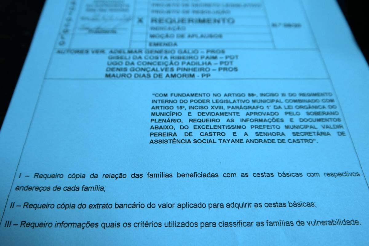 O vereador se comprometeu a enviar um requerimento de forma oficial para a Prefeitura Municipal e a Secretaria Municipal de Assistência Social solicitando a listagem das pessoas que foram beneficiadas com as cestas básicas.