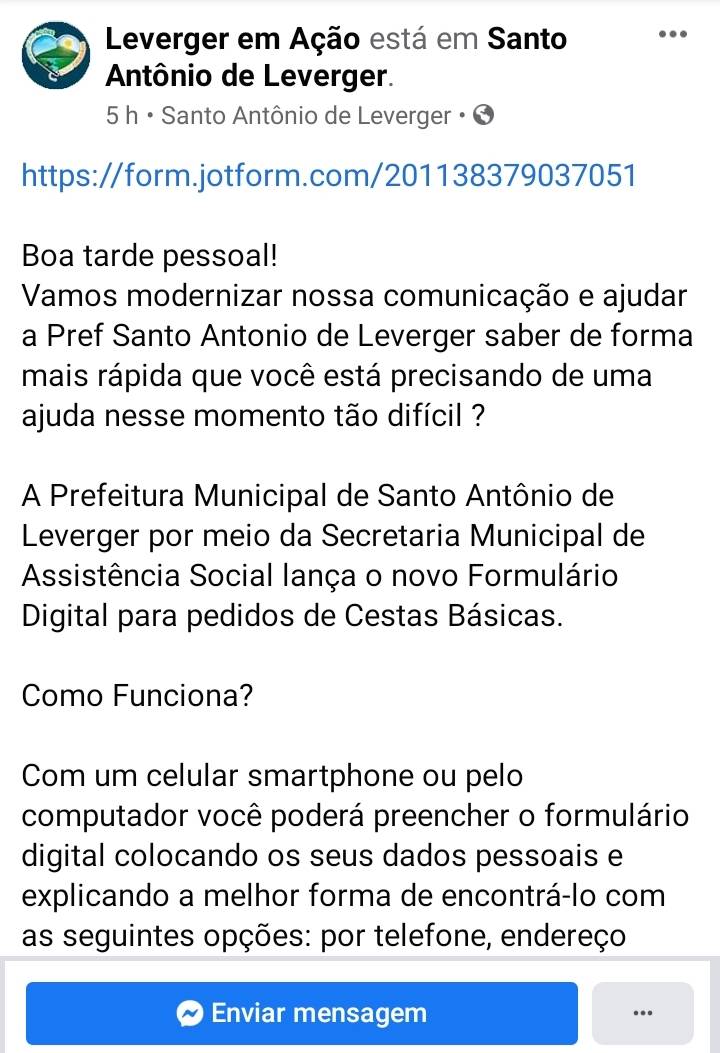 Causa estranheza é que se houve recebimento das cestas básicas, a Prefeitura de Santo Antonio de Leverger não divulgou o auxilio recebido do Governo do Estado e nem quem foi beneficiado”, afirmou o vereador.
