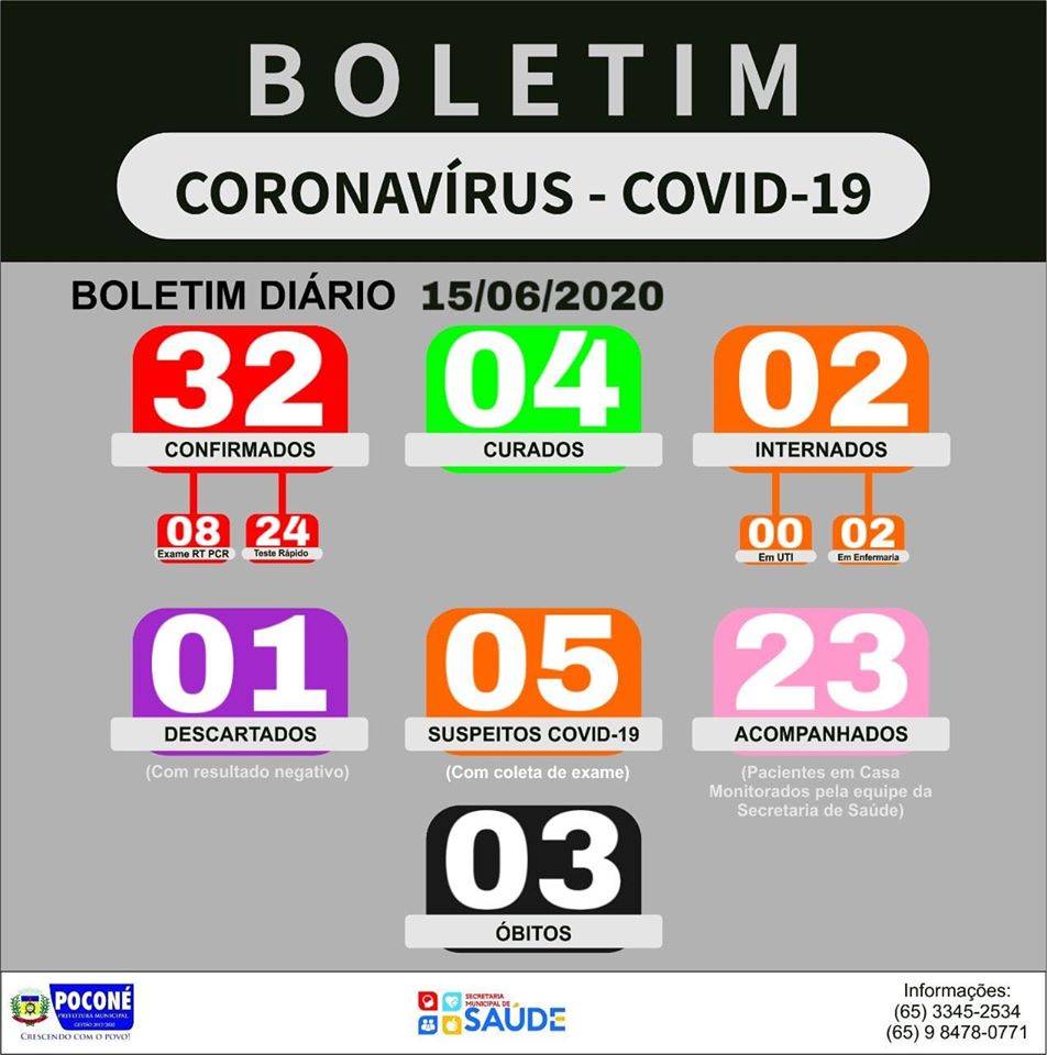 A Prefeitura Municipal de Poconé através da Secretaria Municipal de Saúde, vem informar a população poconeana sobre cenário atual do município ao enfrentamento à pandemia da COVID-19.