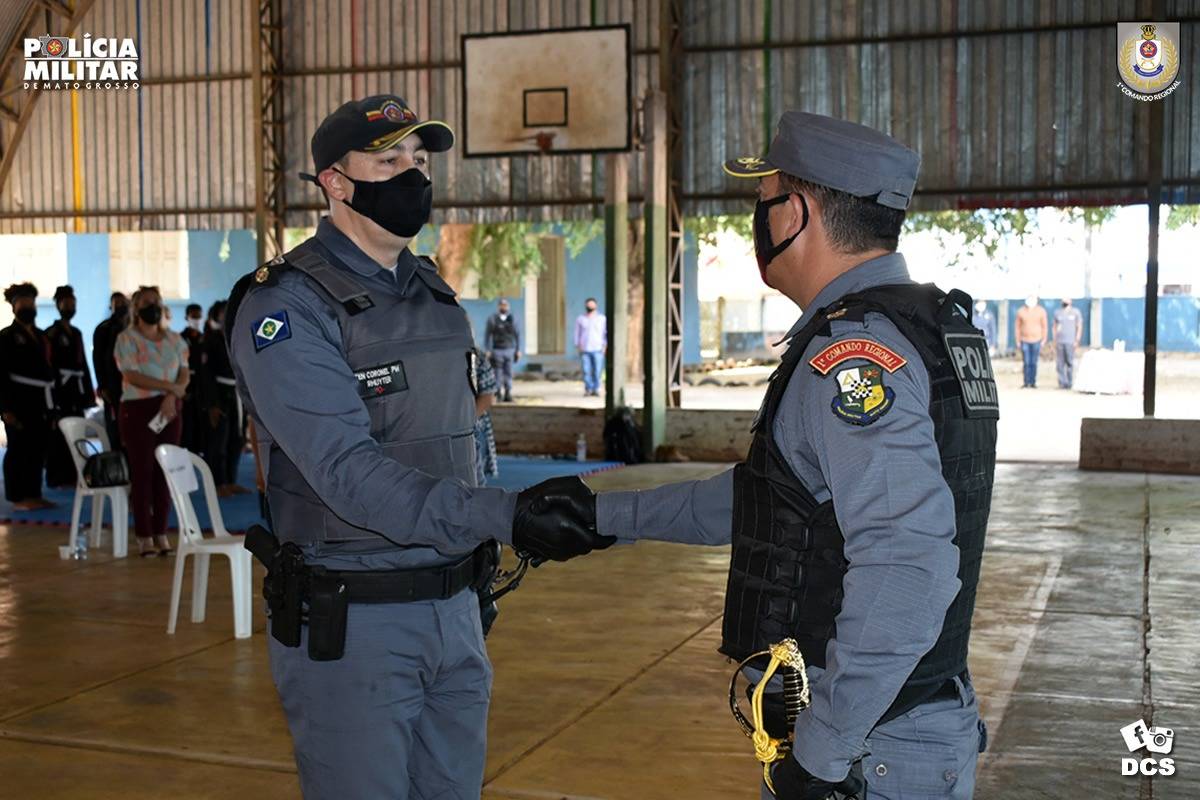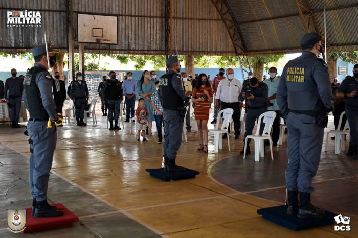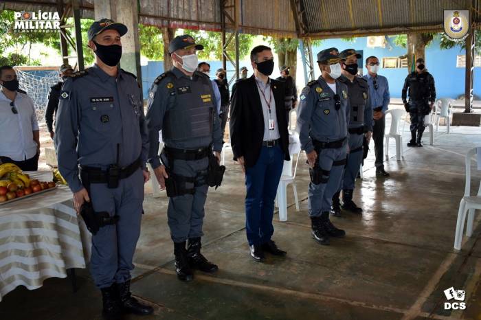 A troca de comando da PM em Leverger reuniu autoridades civis e militares no pátio central da Escola Estadual Leônidas de Matos, no centro da cidade. O comandante do 1º Comando Regional da Polícia Militar, coronel Esnaldo Moreira, presidiu a solenidade e, ao lado do comandante geral da PM, coronel Jonildo José de Assis, deram as boas-vindas ao novo comandante.