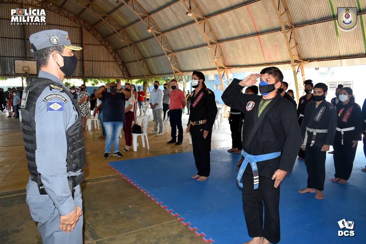 O coronel Assis parabenizou o TC Rhyiter destacando a importância do trabalha que ele desenvolveu em mais de quatro anos de atuação à frente da 3ª Companhia de Leverger. Destacou que Rhuyter não se limitou ao operacional, ao policiamento, também serviu a comunidade no social e deixou sua marca no projeto Jiu-Jitsu ‘Lutando pelo Futuro.