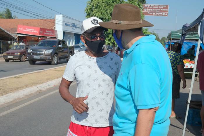 Em seu primeiro evento do dia, Dudu e Marcelo visitaram a feira da cidade de Leverger que é realizada aos domingos e atrai centenas de moradores e visitantes.