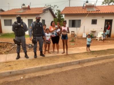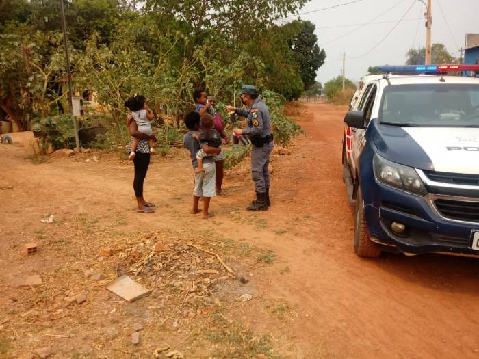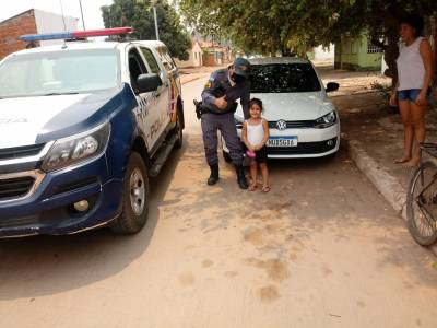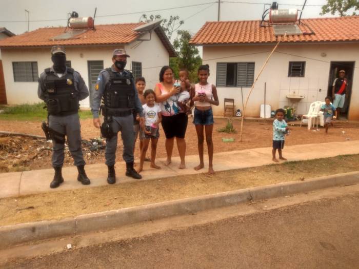 O trabalho da policia Militar envolve açoes preventivas e ostensivas mas também a parte social e de interaçao com a comunidade e as crianças.