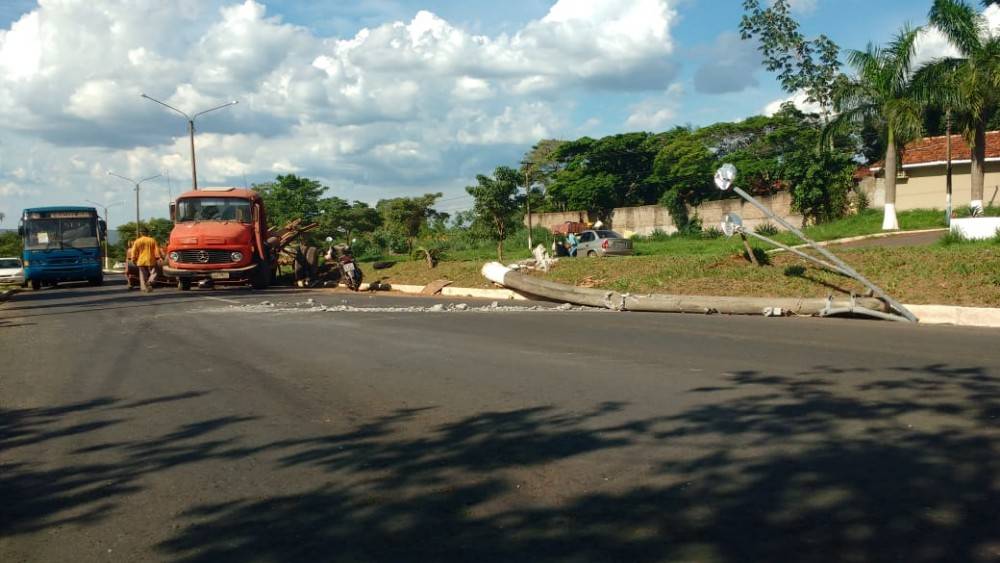Nesta segunda-feira (23) acaba de ocorrer um acidente na Av Emanuel Pinheiro, no trecho da entrada da cidade de Chapada dos Guimarães. Um Caminhão da construtora IPÊ, que transportava água para uma contrução, quebrou no final da subida. Segundo o motorista, o caminhão veio descendo de ré até atimgir um poste e tombar.