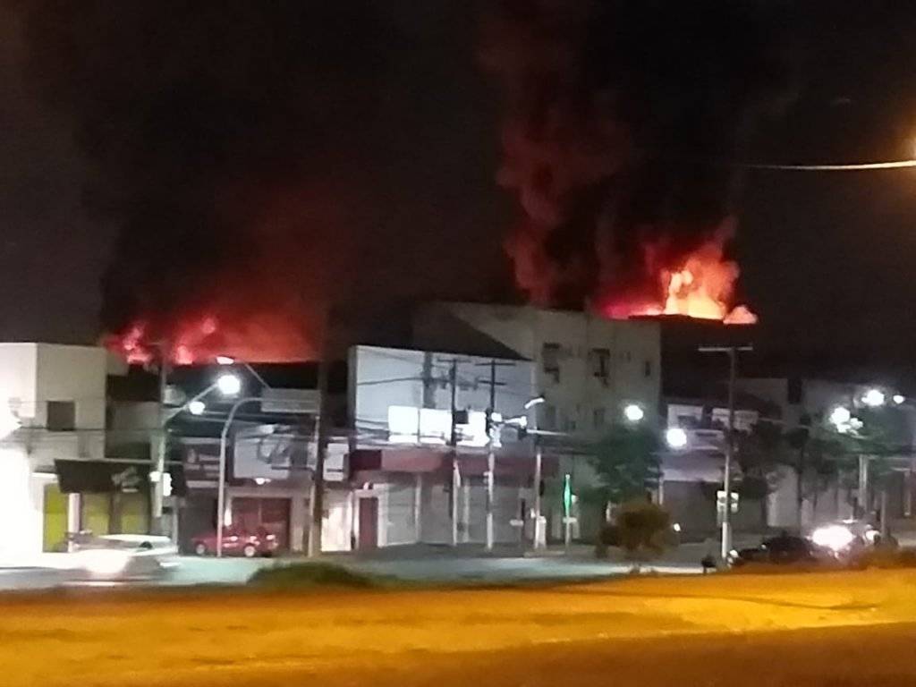 A empresa destruída pelo fogo atua como distribuidora de materiais para escritório, aviamentos, festas, informática e armazena diversos produtos inflamáveis.