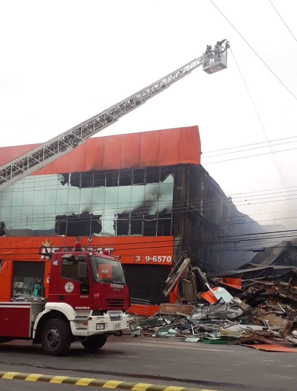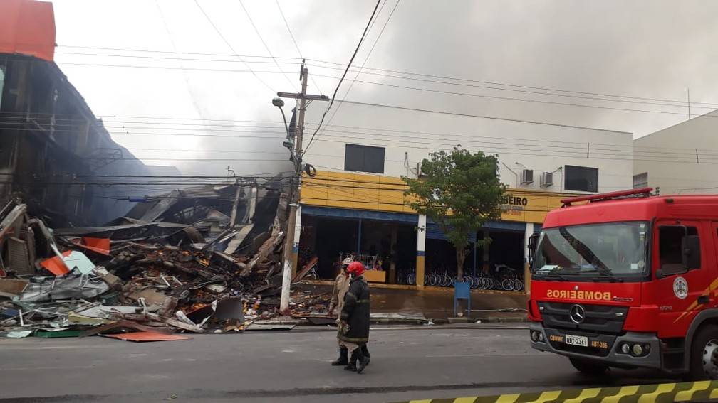 O fogo teve início na papelaria, que fica na Avenida 15 de Novembro, mas atingiu também uma lotérica ao lado e uma loja de bicicletas. O prédio da lotérica desabou.