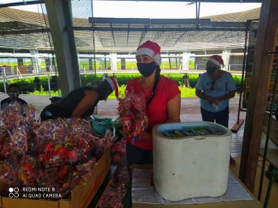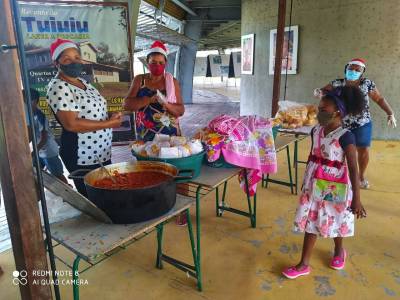 Ao longo de toda manhã do domingo, as crianças do distrito e comunidades circunvizinhas receberam lanches e kits com doces.