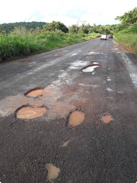Com o inicio do período chuvoso aumentaram os buracos ao longo da rodovia e a mata está invadindo as margens da rodovia o que tem causado preocupação e inúmeros acidentes na rodovia.