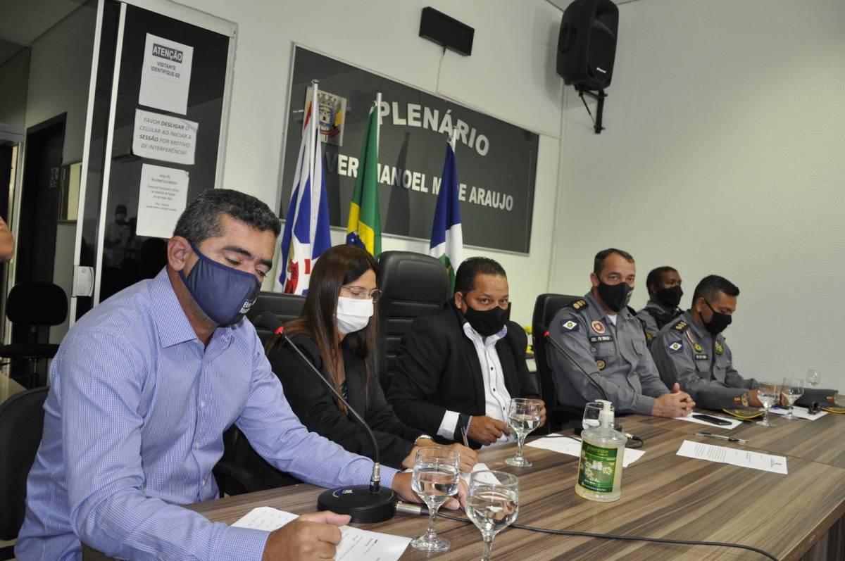 O encontro idealizado pelo presidente da Câmara, vereador Denas Silva (PSDB), contou com a presença de membros do Executivo Municipal ( prefeita Margareth Gonçalves, secretáritos), dos comandantes da PM, coronel Esnaldo Moreira ( CR1 PM), os tenentes-coronéis Adão César (Batalhão de Trânsito de MT), e Edylson Pintel ( 3ª CIPM MT), além de todos os vereadores da atual legislatura.