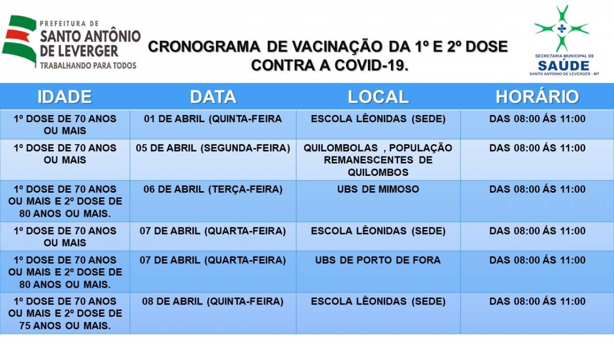 Veja o quadro de vacinação projetado pela prefeitura de Santo Antônio: