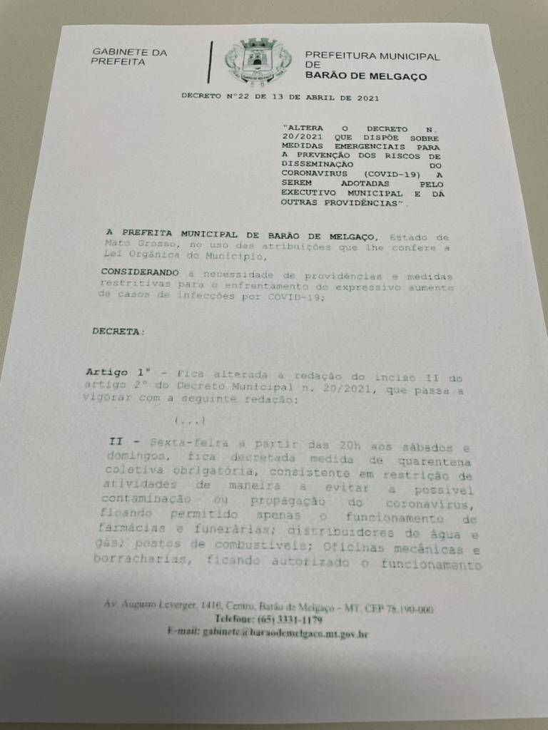 Leia no quadro abaixo a integra do decreto do município de Santo Antônio de Leverger.