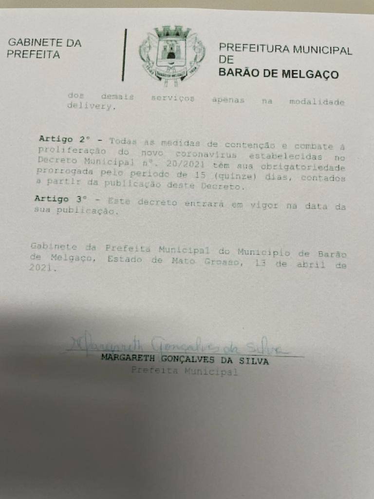 Durante a reunião ocorrida no gabinete da prefeita de Santo Antônio de Leverger, Franciele Magalhães (PTB), a sua colega Margareth Gonçalves (PSDB), se comprometeu e pactuaram em editar um novo decreto, o que ocorreu na última terça-feira (13). A prefeitura de Santo Antônio publicou o seu novo decreto na noite desta quarta-feira (14).