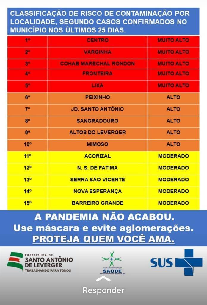 A classificação é de responsabilidade da secretaria de Saúde do município de Santo Antônio de Leverger e foi amplamente divulgada e compartilhada nas redes sociais nos últimos dias.
