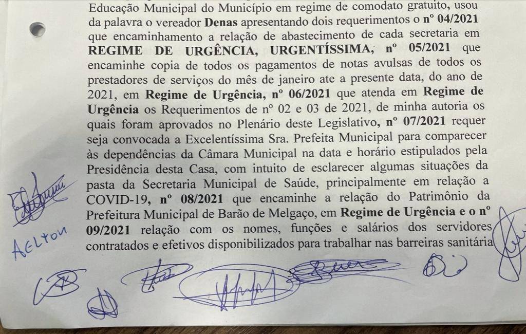 A Câmara de Barão de Melgaço-MT, decidiu na sessão ordinária desta sexta-feira (23), a data em que a prefeita, Margareth Gonçalves (PSDB), vai ter que comparecer no plenário daquele poder legislativo para prestar esclarecimentos sobre a situação atual da secretaria municipal de Saúde, principalmente em assuntos relacionados a Covid-19.