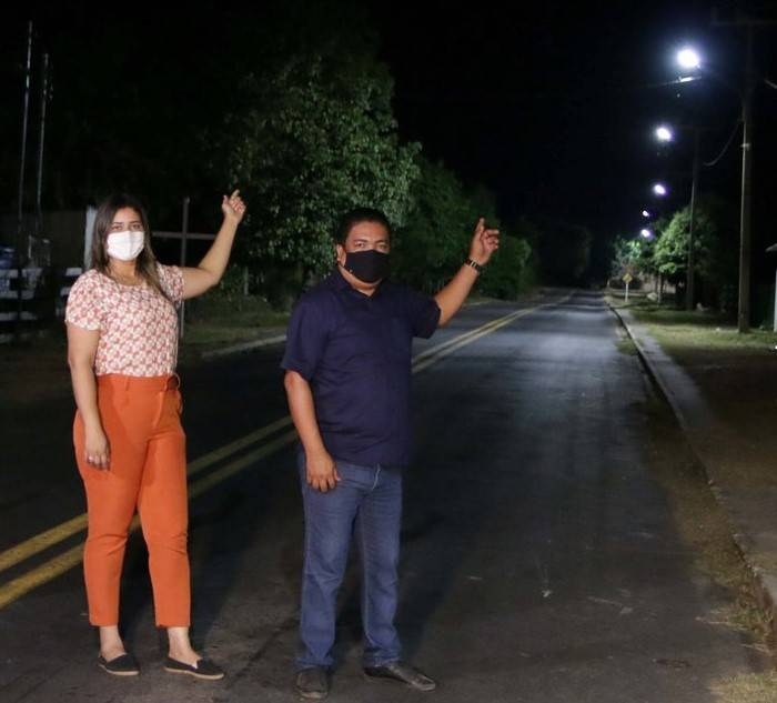 O presidente da Câmara Municipal de Santo Antônio de Leverger, vereador Rômulo Queiroz (PV), e a prefeita, Francieli Magalhães (PTB), vistoriaram na noite desta segunda-feira (17), a conclusão dos serviços da primeira etapa da troca de lâmpadas de Vapor de Sódio por LEDs, no distrito de Mimoso (72 KM).